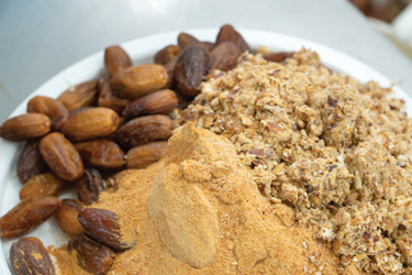 Dates have a high moisture content and range in size from 1-1/4 in. (3 cm) to nearly three inches (2.8 cm) long. To process them, the dates are air-dried for two days to reduce the moisture content from 50% to 7%. According to the company, anything greater than 7% moisture would cause the dates to clump during processing.