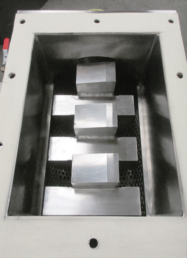 Click to enlargeScreen Classifying Cutter downsizes tungsten heavy alloy scrap (2.5 times the density of steel) into powder for reuse in the compaction process.