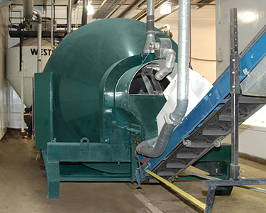 Click to enlargeThe 300 cu ft (84 cu m) capacity rotary batch blender homogeneously mixes and coats two microorganisms on a carrier.