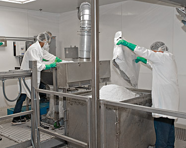 Click to enlargePowdered raw materials pass quality control lab tests prior to mixing with other ingredients.