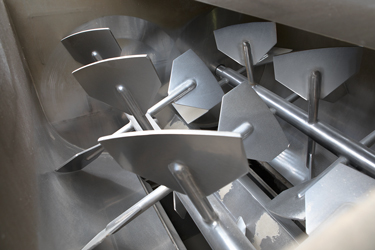 Twin paddle agitators counter-rotating within two ‘U’ shaped troughs create a fluidizing zone in which airborne materials intersperse rapidly with minimal degradation.