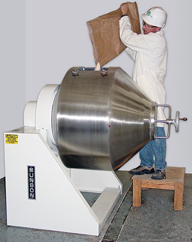 Munson's Mini Mixer is a proportionally scaled version of the company's widely used Rotary Batch Mixers. Six different sizes of this small-scale mixer are available, for small batch operations, and laboratory and pilot plant applications.