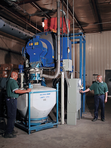 Interior mixing flights were specified with large radius, ground and polished weldments, eliminating areas where material could lodge. "We rarely have to clean out between mixes," says Stahl. "Periodically, we'll open a door on the mixer, pass air through it and turn on the dust collector to the mixer. If there's any buildup, it cleans quickly. We do this as more of a preventative maintenance function than out of necessity."