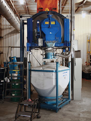 The company uses about 20 of these intermediate bulk containers for temporary storage of blended powders while the properties of the blends are verified, a process that can take several days to a week.