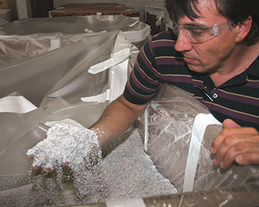 Plant Process Engineer, Steven Reed, inspects quality of recyclate that will be reused in company's film compounding operations.